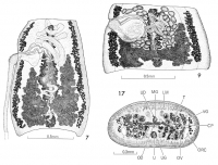 FIGURES 1, 3, 4, 7, 9, 17. Acanthobothrium americanum n. sp. 7. Gravid segment. 9. Mature segment. 17. Cross section through isthmus of ovary.
