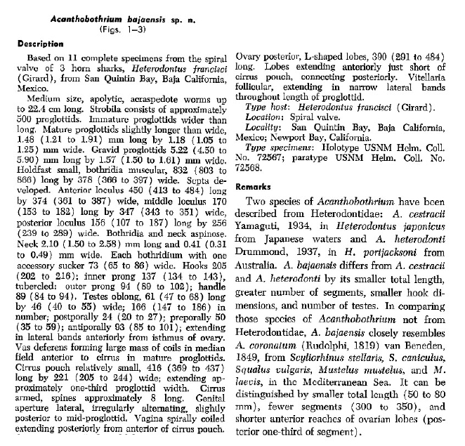 | Scientific Name Notes | The original name of this species was A. bajaensis, however it was modified by Caira & Zahner (2001) to A. bajaense so that the gender of the specific and generic epithets match. |
