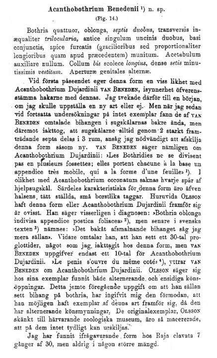 Lönnberg, E. 1889. Bidrag till kännedomen om i Sverige förekommande cestoder. Bihang till Kongliga Svanska Vetenskaps-Akademiens Handlingar 14: 1-69. (285) Download PDF |