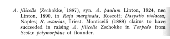 | Synonyms | Calliobothrium filicolle Zschokke, 1888 |