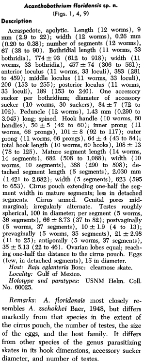 Goldstein, R. J. 1964. Species of Acanthobothrium (Cestoda: Tetraphyllidea) from the Gulf of Mexico. Journal of Parasitology 50(5): 656-661.