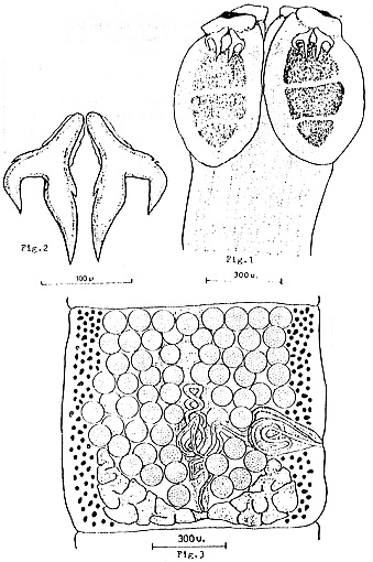 FIGURES 1-3. Acanthobothrium manteri n. sp.
