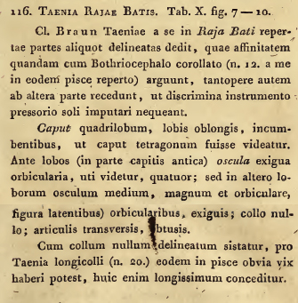 Rudolphi, C. A. 1810. Entozoorum, sive vermium intestinalium. Historia naturalis. Volumen II, Part II. Sumptibus Tabernae Librariae et Artium, Amstelaedami, 386 pp. (4735) Download PDFEuzet, L. 1959. Recherches sur les cestodes tétraphyllides des sélaciens des cotes de France. Doctoral Dissertation, Université de Montpellier, Montpellier, 263 pp. (21) Download PDF |