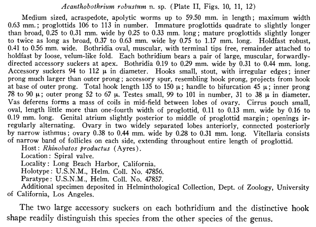Alexander, C. G. 1953. Five new species of Acanthobothrium (Cestoda: Tetraphyllidea) from southern California rays. Journal of Parasitology 39(5): 481-486.