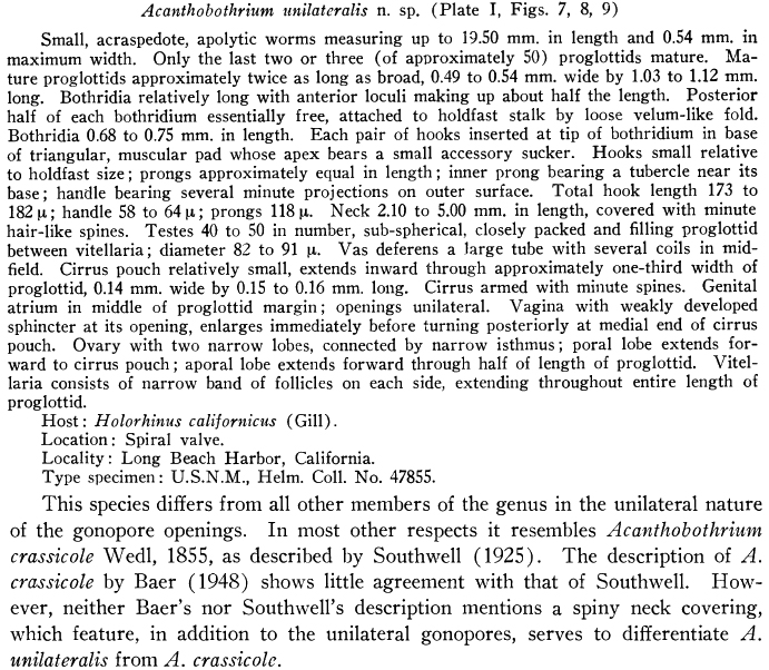 Alexander, C. G. 1953. Five new species of Acanthobothrium (Cestoda: Tetraphyllidea) from southern California rays. Journal of Parasitology 39(5): 481-486. (36) Download PDF |