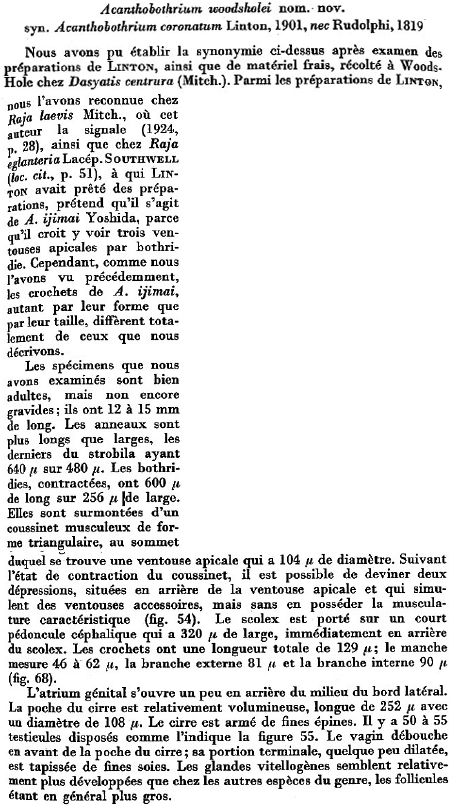 Scientific Name Notes | species described from new collections from Wood’s Hole from Dasyatis centrura, some of Linton’s material (1901) from Raja laevis and specimens of unclear origin (possibly Southwell) from Raja eglenteria |