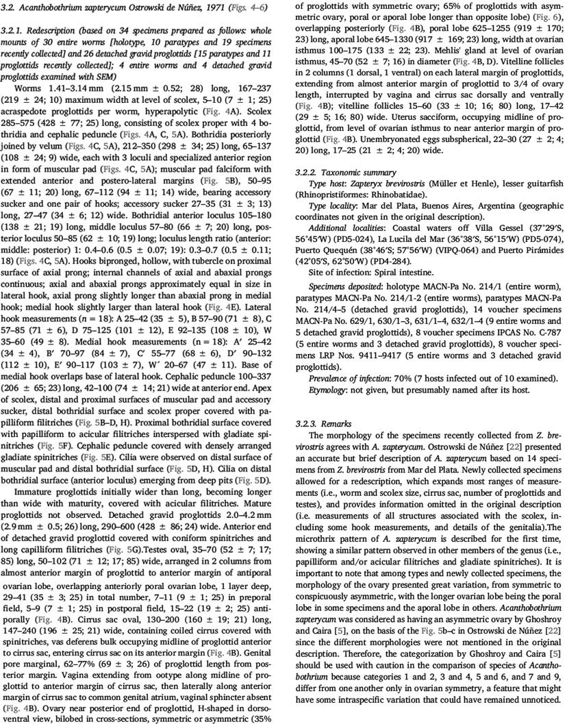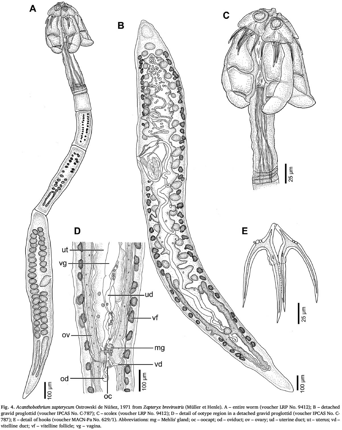 Franzese, F. and V. A. Ivanov. 2018. Hyperapolytic species of Acanthobothrium (Cestoda: Onchoproteocephalidae) from batoids off Argentina. Parasitology International 67: 431–443.