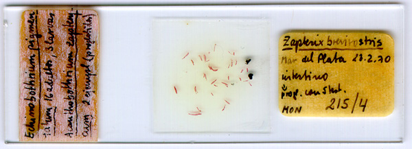 Ostrowski de Núñez, M. 1971. Estudios preliminares sobre la fauna parasitaria de algunos elasmobranquios del litoral bonaerense, Mar del Plata, Argentina. I. Cestodes y trematodes de Psammobatis microps (Günther) y Zapteryx brevirostris (Müller y Henle). Physis 30: 425-446.