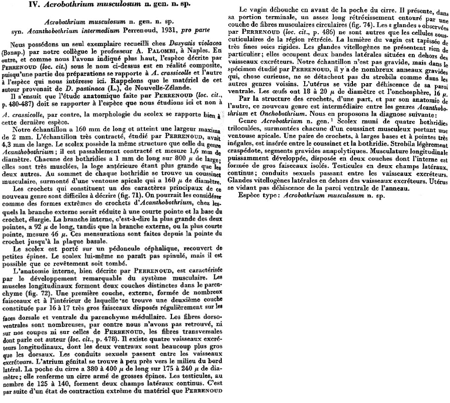 | Valid Name | Acanthobothrium musculosum (Baer, 1948) Yamaguti, 1959 |