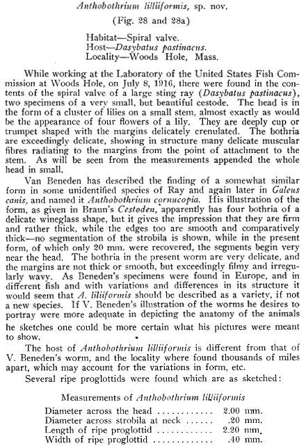FIGURE 28. Anthobothrium lilliiformis n. sp. [scolex]. 2- A. Ripe proglottid.