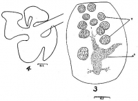 FIGURES 3 & 4. Anthobothrium oligorchidum n. sp. 3. Immature proglottid. 4. Scolex.