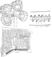 ESTAMPA III. FIGURE 3. Anthobothrium peruanum n. sp. 3. Corte transversal de parte de proglote (ML: Musculatura longitudinal; T: Testículos; MT Musculatura transversal).