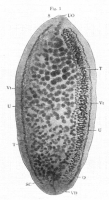 Plate VIII. Fig. 1. Amphilina japonica; ventral view. Abbreviations used in Figures. S=sucker, UO=uterus opening, U=uterus, SC=seminal coil, Vt=vitellarium, T=testis, O=ovary, VD=vaginal duct.