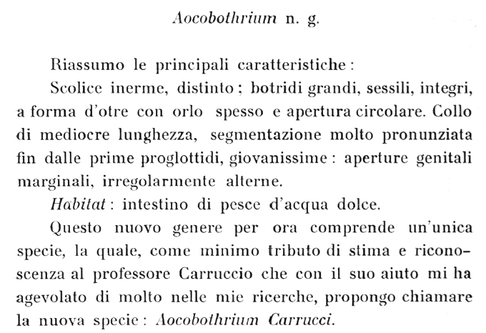 | Scientific Name Notes | Ruhnke (2011) noted that Aocobothrium was a nomen dubium. A. carrucci should be considered a nomen dubium as well. |