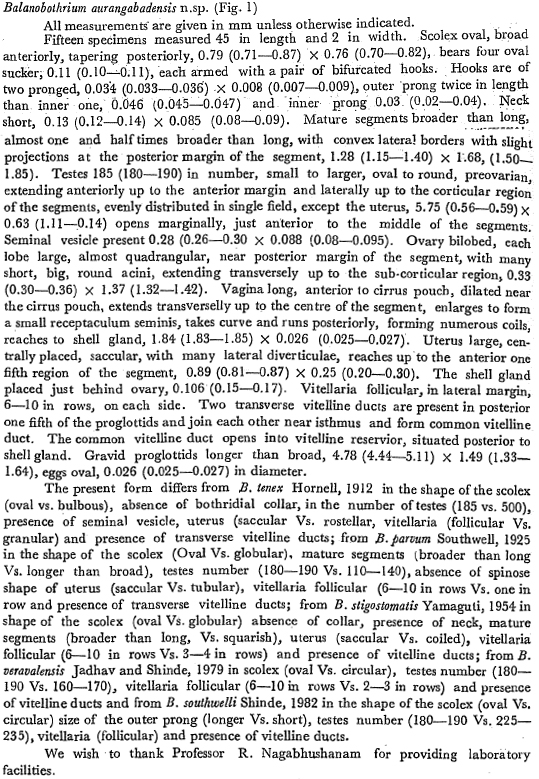 Shinde, G. B., A. D. Mohekar and B. V. Jadhav. 1983. Balanobothrium aurangabadensis n. sp. (Cestoda: Lecanicephalidae) from Stegostoma tigrinum. Indian Journal of Parasitology 7: 229-230. (419) Download PDF |