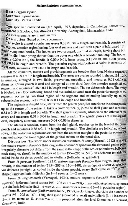 | Type Material | type specimen desposited in Cestodology Laboratory, Department of Zoology, Marathwada University, Aurangabad, Maharashtra, India |