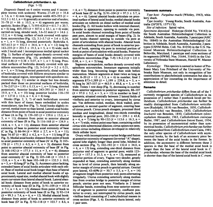 | Synonyms | Calliobothrium pritchardae Caira & Ruhnke, 1990 |