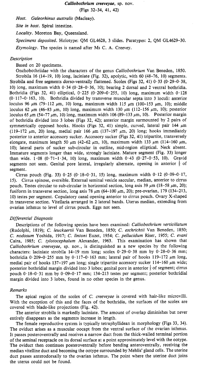 Butler, S. A. 1987. Taxonomy of some tetraphyllidean cestodes from elasmobranch fishes. Australian Journal of Zoology 35: 343-371. (85) Download PDF |