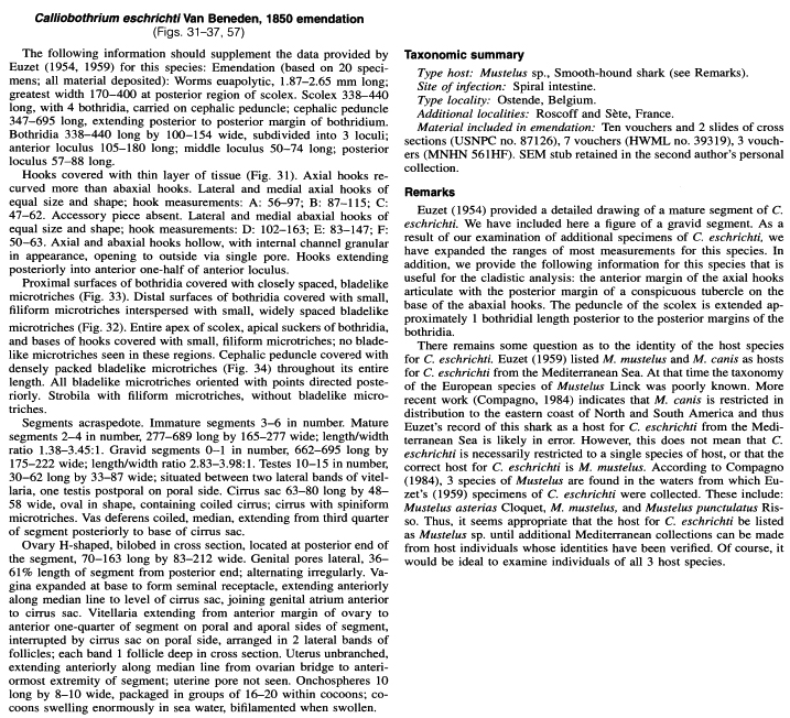 | Scientific Name Notes | the second “i” at the end of the specific epithet was formally dropped by Nasin, Caira & Euzet (1997) |
