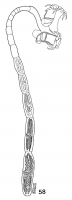 FIGURES 54 -60. Complete worm drawings of small-bodied Calliobothrium species. Note that all are drawn to the same scale. 58. Calliobothrium evani.