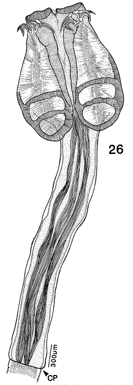 FIGURE 26. Scolex of Calliobothrium leuckarti. AP, accessory piece; CP, cephalic