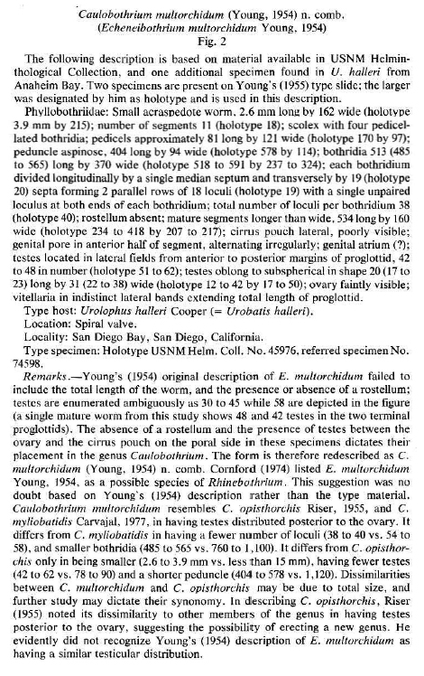 | Synonyms | Echeneibothrium multorchidum Young, 1954 |