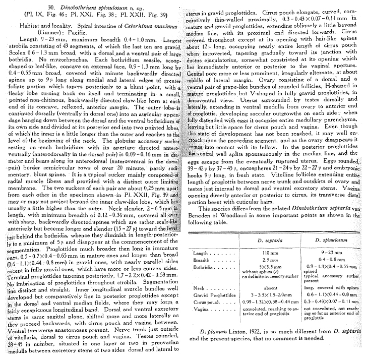 | Synonyms | Dinobothrium spinosum Baylis, 1950 Dinobothrium humile Euzet, 1952 |