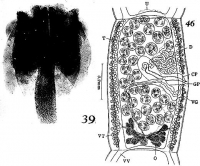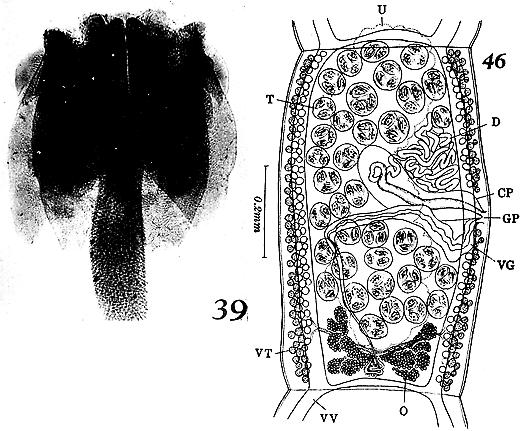 PLATE IX. FIGURE 46. Dinobothrium spinulosum n. sp. Mature proglottis of Dinobothrium spinulosum, ventral view.