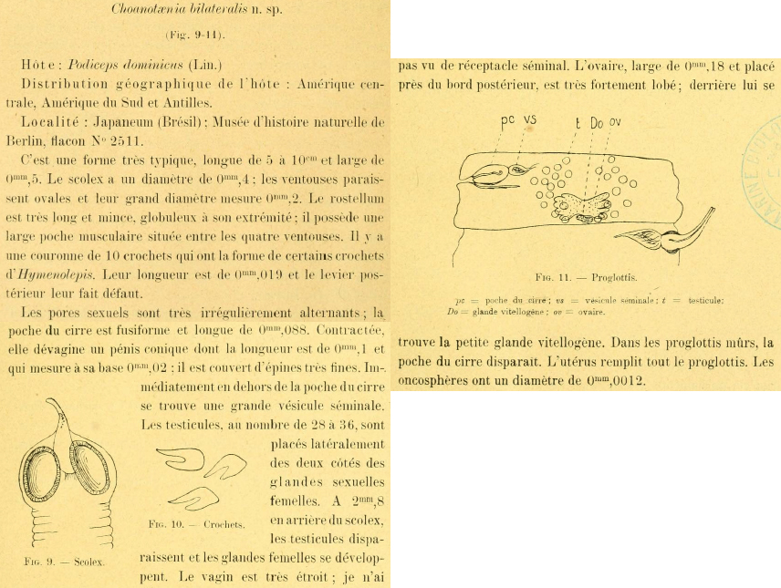 | Synonyms | Choanotaenia bilateralis Fuhrmann, 1908 Icterotaenia bilateralis (Fuhrmann, 1908) Baer, 1925 |