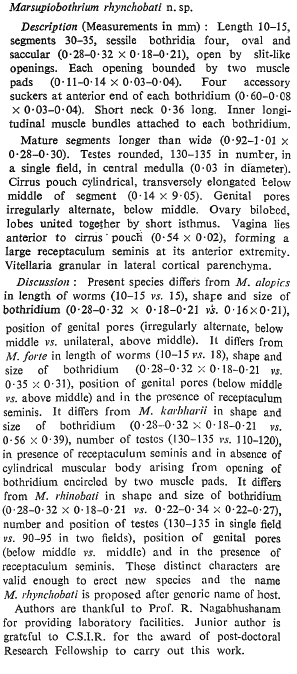 Shinde, G. B. and R. A. Deshmukh. 1980. Two new species of Marsupiobothrium Yamaguti, 1952 (Cestoda: Phyllobothriidae) from marine fishes. Current Science 49: 643-644. (413) Download PDF |