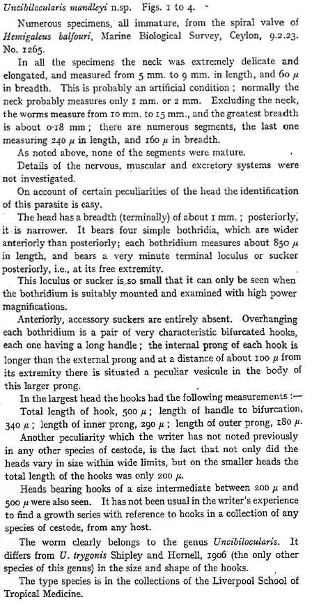 | Synonyms | Uncibilocularis mandleyi Southwell, 1927 |