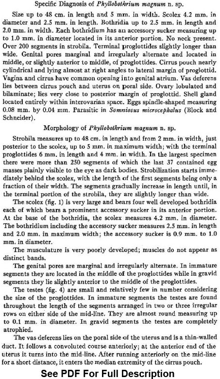 | Synonyms | Phyllobothrium magnum Hart, 1936 |