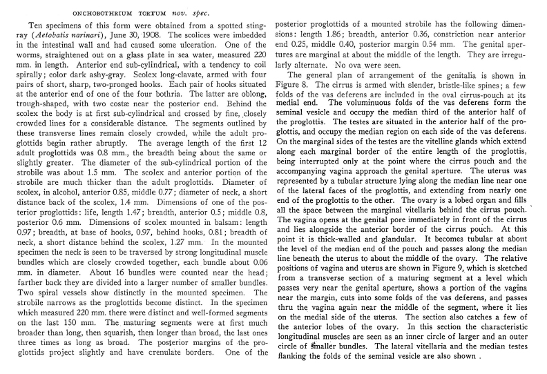 Linton, E. 1916. Notes on two cestodes from the spotted sting-ray. Journal of Parasitology 3: 34-37. (278) Download PDF |