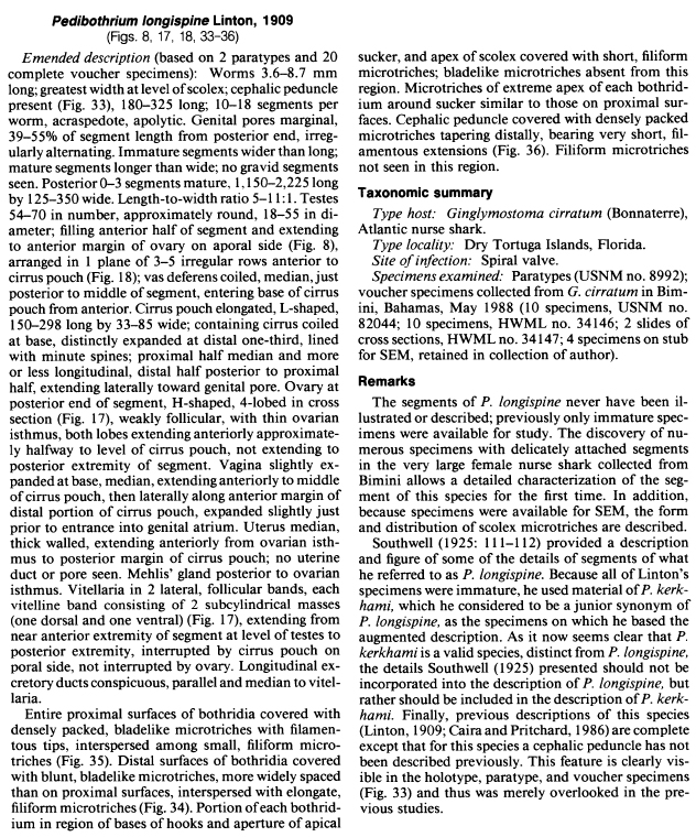 | Scientific Name Notes | Caira & Pritchard (1996) used the date 1909 as the date the publication was distributed. However, this requires verification. |