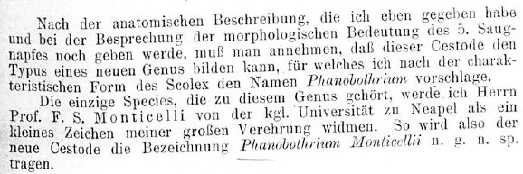 Mola, P. 1907. Ueber eine neue Cestodenform. Centralblatt für Bakteriologie, Parasitenkunde und Infektionskrankheiten, 1. Abteilung 44: 256-260. (322) Download PDF |