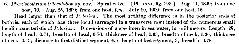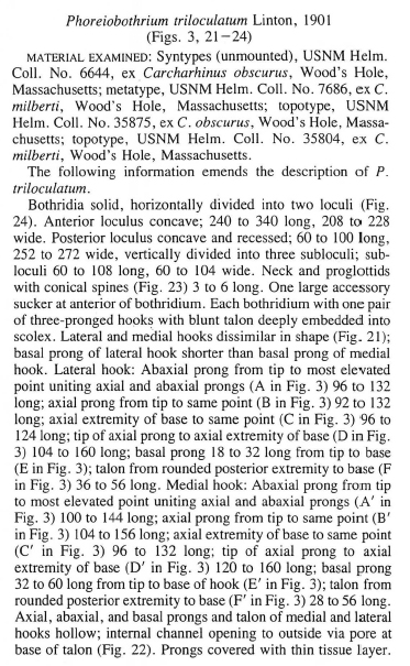 | Scientific Name Notes | Linton gives the host as “Carcharinus obscurus (Carcharias obscurus), Dusky Shark” |