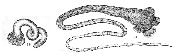 PLATE II. FIGURE 26 & 27. Phyllobothrideum acanthiae vulgaris n. sp. 26(18). Scolex Phyllobothridei e ventriculo Acanthiae vulgaris; figura speciminis in glycerino servati. 27 Species eadem magis evoluta (long. 9 mm) bothriis affixa; ex intestinis.