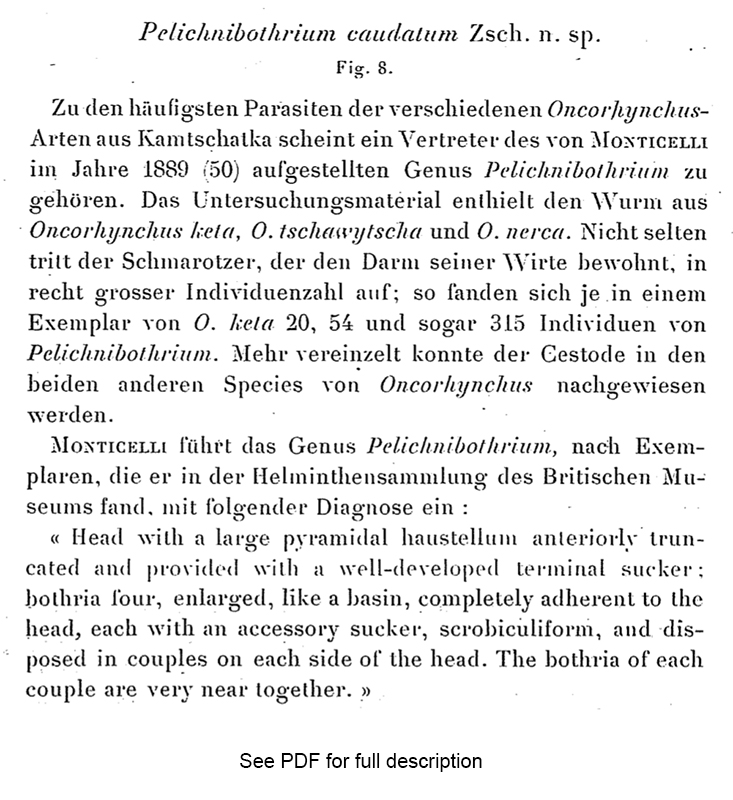 | Valid Name | Pelichnobothrium caudatum Zschokke & Heitz, 1914 |