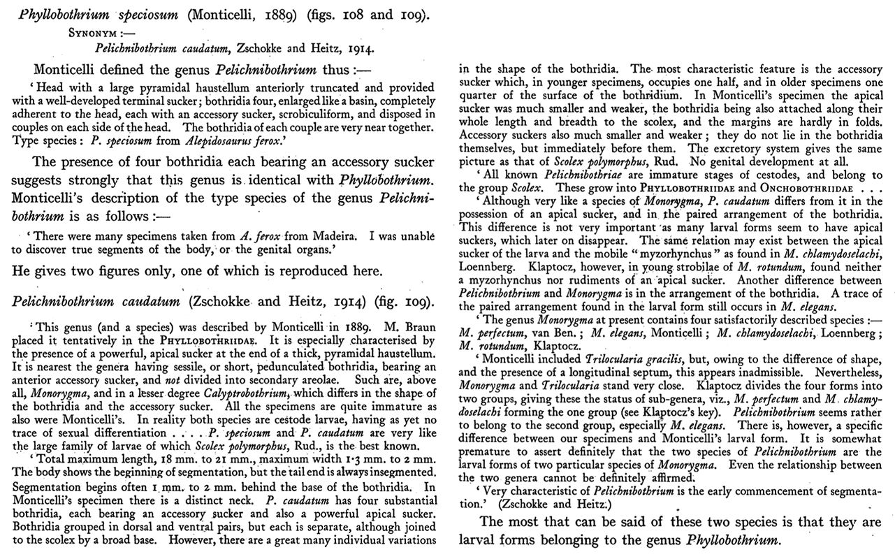 | Scientific Name Notes | This species was treated in Ruhnke (2011) under Phyllobothrium caudatum, although the latter name was noted as a junior synonym of Pelichnobothrium caudatum. |