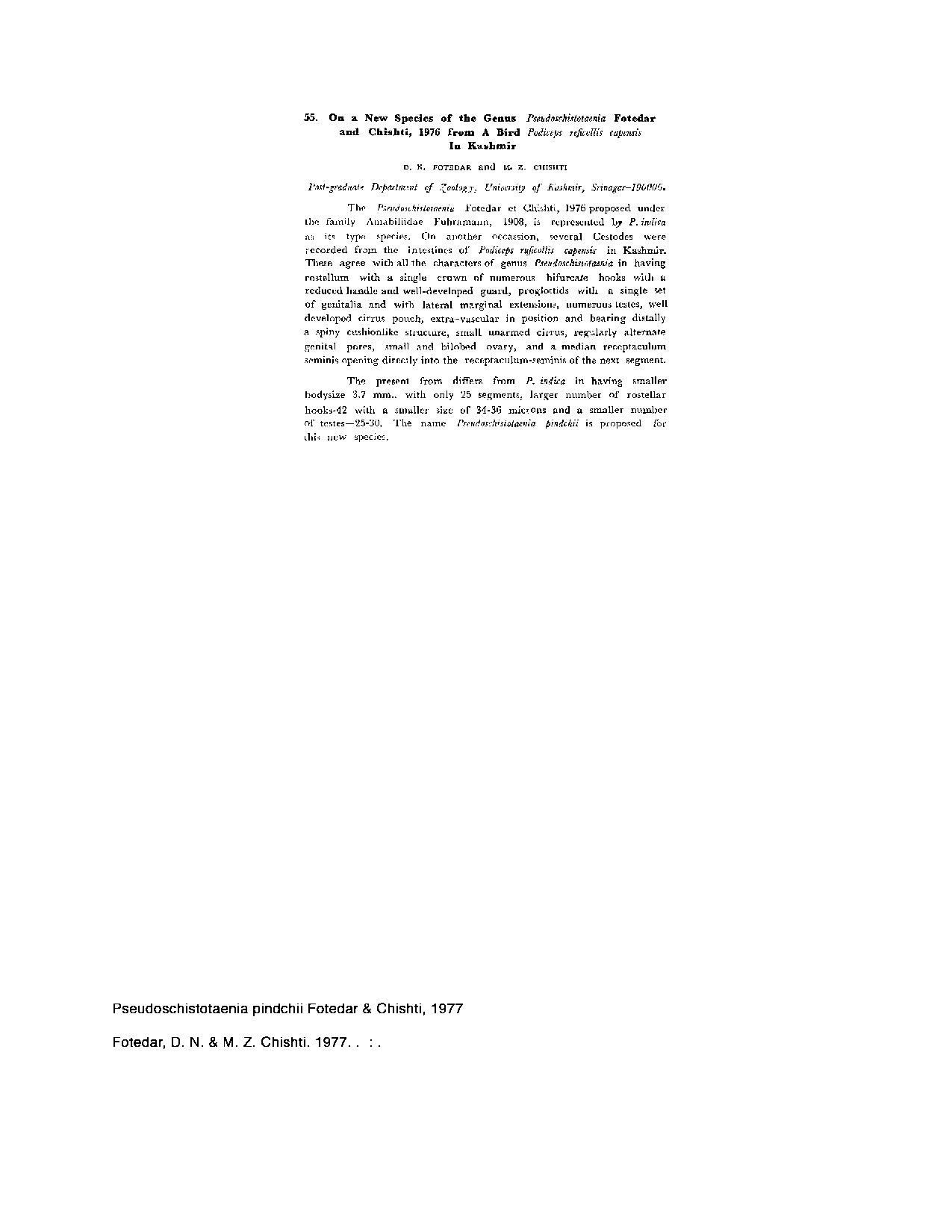 Synonyms Pseudochistotaenia pindchii (Fotedar & Chishti, 1977) Jones, 1994