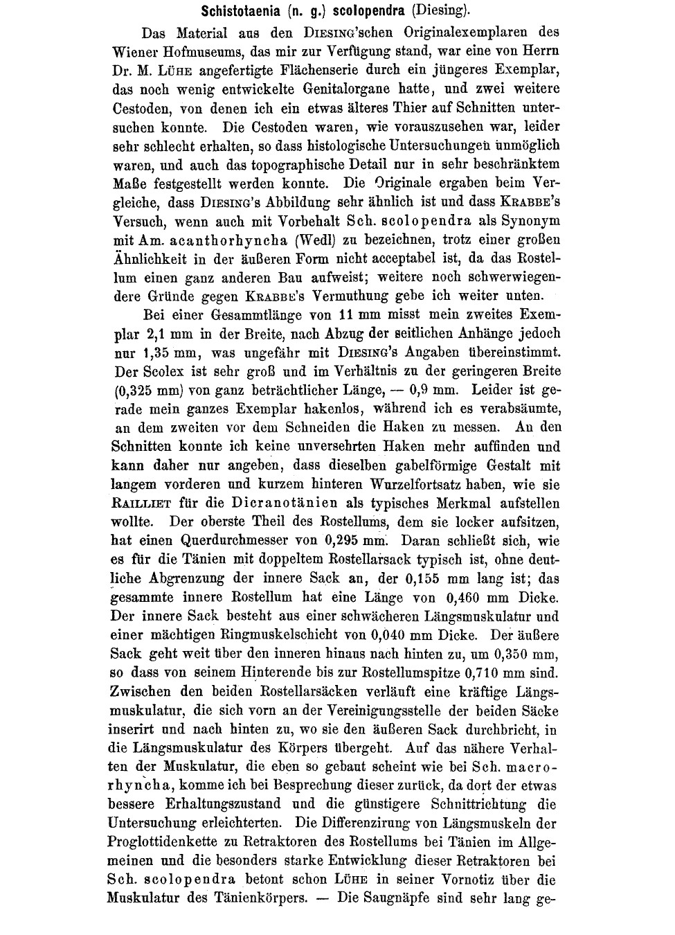 Cohn, L. 1900. Zur Anatomie der Vogelcestoden. I. Zeitschrift fur Wissenschaftliche Zoologie 67(2): 255-290. (6672) Download PDF |