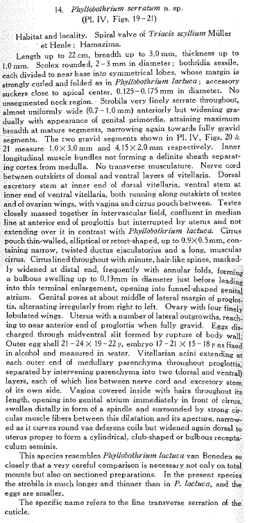 Phyllobothrium serratum Yamaguti, 1952