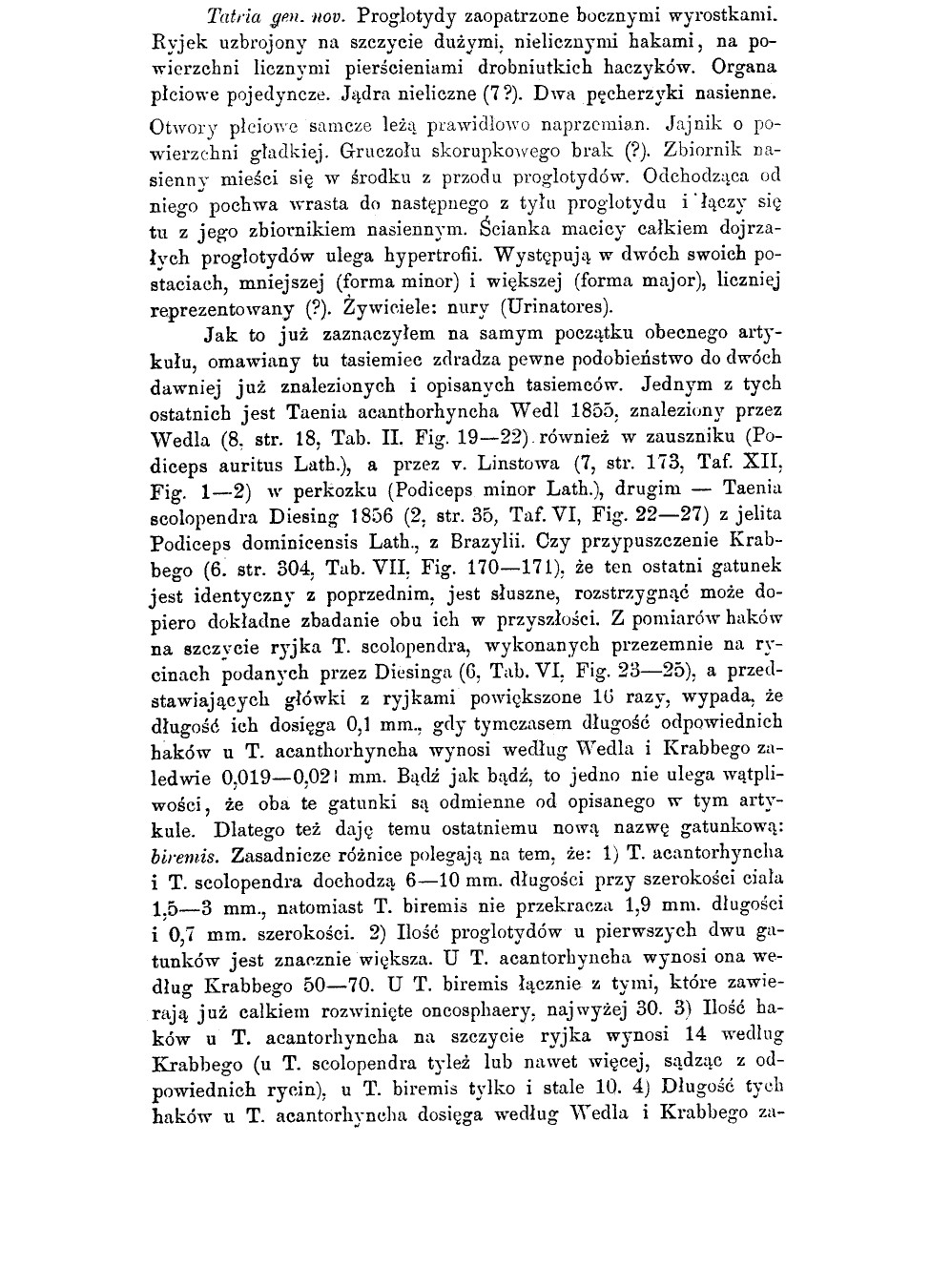 Kowalewski, M.. 1904. Helminthological studies Part VIII. On a new tapeworm: Tatria biremis gen. nov., sp. nov. Bulletin international de l'Académie des Sciences de Cracovie, Classe des Sciences Mathématiques et Cracovie 7: 367-369. (6327) Download PDF |