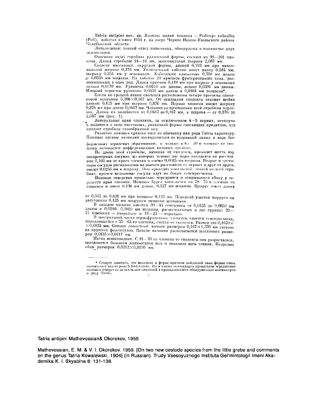 Scientific Name Notes -Ryzhikov & Tolkacheva (1981) synonymized Tatria antipini Mathevossian& Okorokov, 1959 with Schistotaenia colymba Schell, 1955