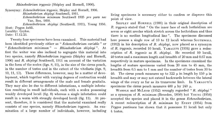| Synonyms | Echeneibothrium trygonis Shipley & Hornell, 1906 |