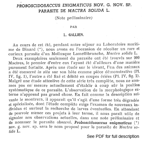| Synonyms | Proboscidosaccus enigmaticus Gallien, 1949 |