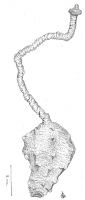 FIG. 1. Aspect du parasite après sa séparation de la Mactre. On notera dans la région antérieure de la trompe, l'épanouissement discoïdal prolongée par une languette et par lequel le parasite est implanté dans son hôte.