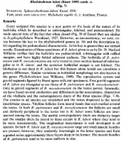 Euzet, L. 1959. Recherches sur les cestodes tétraphyllides des sélaciens des cotes de France. Doctoral Dissertation, Université de Montpellier, Montpellier, 263 pp. (21) Download PDFCampbell, R. A. and J. G. Carvajal. 1979. Synonymy of the phyllobothriid genera Rhodobothrium Linton, 1889, Inermiphyllidium Riser, 1955, and Sphaerobothrium Euzet, 1959 (Cestoda: Tetraphyllidea). Proceedings of the Helminthological Society of Washington 46: 88-97. (110) Download PDF |