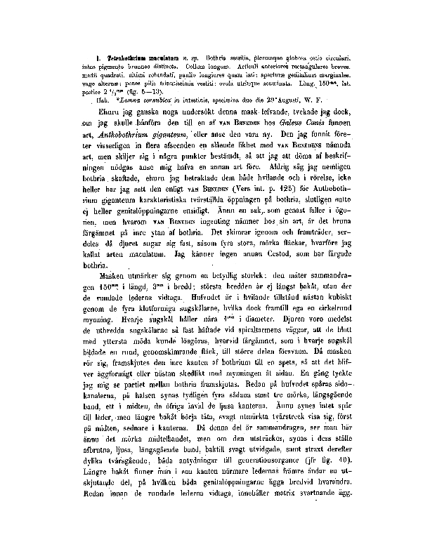 Olsson, P. 1866-1867. Entozoa, iakttagna hos Skandinaviska hafsfiskar. I. Platyelminthes. Lunds Universitatis Årsskrift Mathematik och Naturvetenskap 3(3): 59pp., pls. 1-2,. (336) Download PDF |