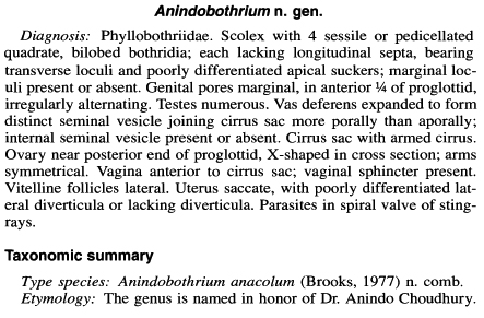 Type Species Anindobothrium anacolum (Brooks, 1977) Marques, Brooks & Lasso, 2001